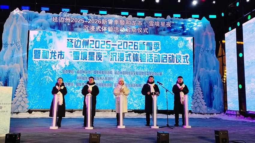长白山下雪纷飞,粉雪仙境喜迎宾。12月12日,延边州2025—2026新雪季启动仪式暨和龙市“雪境星夜”沉浸式体验活动在和龙市老里克景区隆重启幕。活动践行“冰天雪地也是金山银山”发展理念,紧扣“长白天下雪・吉美在延边”文旅品牌,拉开延边冰雪旅游盛宴新篇章。